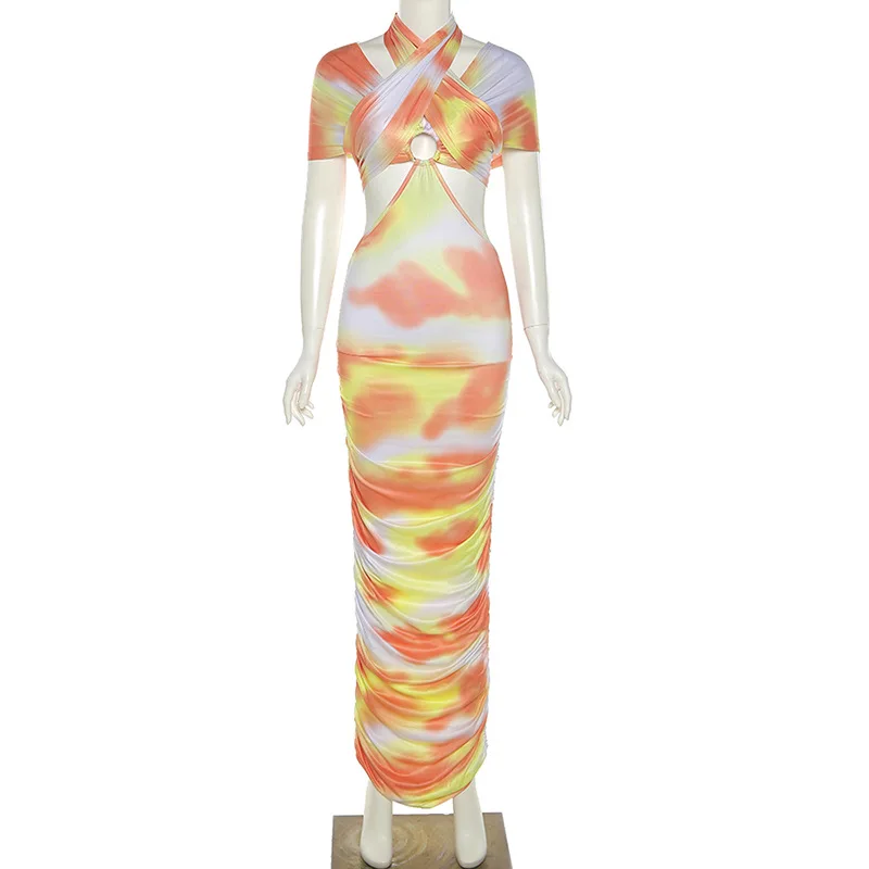 2023 New Women's Sexy Open Back Single Shoulder Oblique Shoulder Dual Shoulder Sleeveless Zebra Long Dress