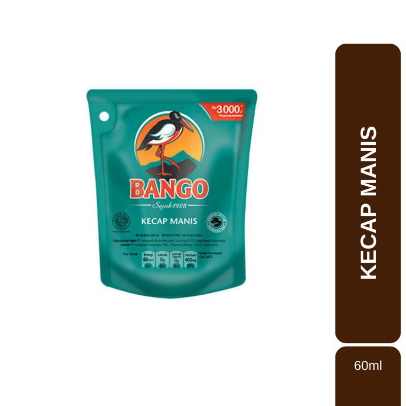 Kecap Bango 60 ml Terbuat dari kedelai hitam alami terbaik. Bumbu dapur atau penyedap makanan berupa cairan berwarna cokelat kehitaman yang rasanya manis.