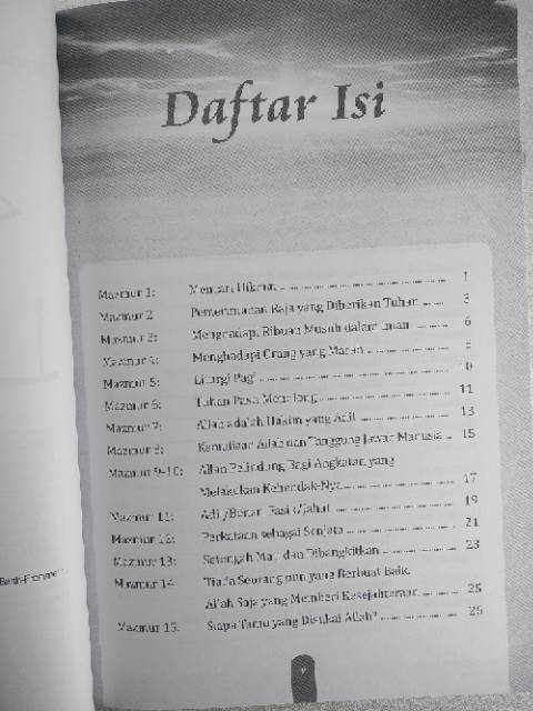 Buku ini berisi renungan renungan singkat yang sarat makna dan pengetahuan mengenai Mazmur 1 50. Kiranya renungan ini dapat berguna dalam mencari hikmat Allah lewat berbagai pengalaman kehidupan religius.