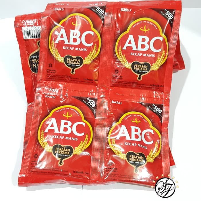 Kecap manis ABC Terbuat dari perasan pertama kedelai pilihan, menjadikan kecap manis abc kental, hitam dan kaya rasa.Berat Netto : 15ml per sachet1 Lembar isi 12 SachetHarga tercantum adalah harga per-lembar