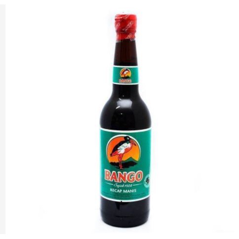 Kecap Manis brand bango kemasan botol beling (kaca) ukuran 620 ml.