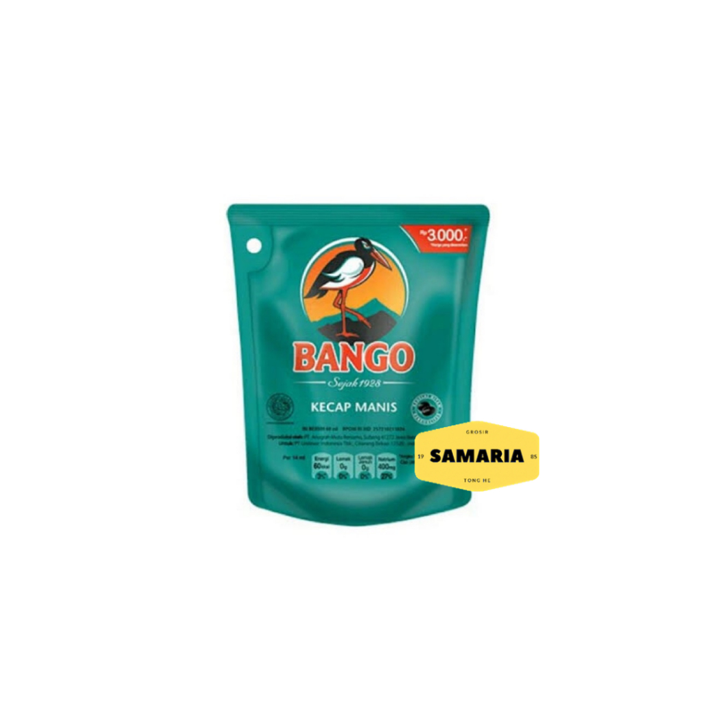 Kecap manis Bango kemasan pouch 60 ml. Kecap Bango telah teruji secara rasa sejak tahun 1928 dan menjadi kecap andalan untuk masyarakat Indonesia. Cocok untuk memasak ataupun sebagai teman makan anda.
