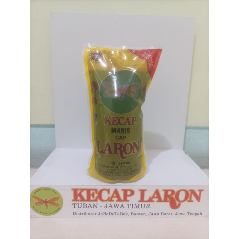 Kecap Manis Cap Laron Refill 620 ml / 1.0 Kg. Keunggulan kami Menggunakan Gula Kelapa Asli, Kedelai Hitam Rempah Pilihan dan tanpa Bahan Pengawet sangat Cocok untuk Hidangan Nusantara Exp Maret 2027