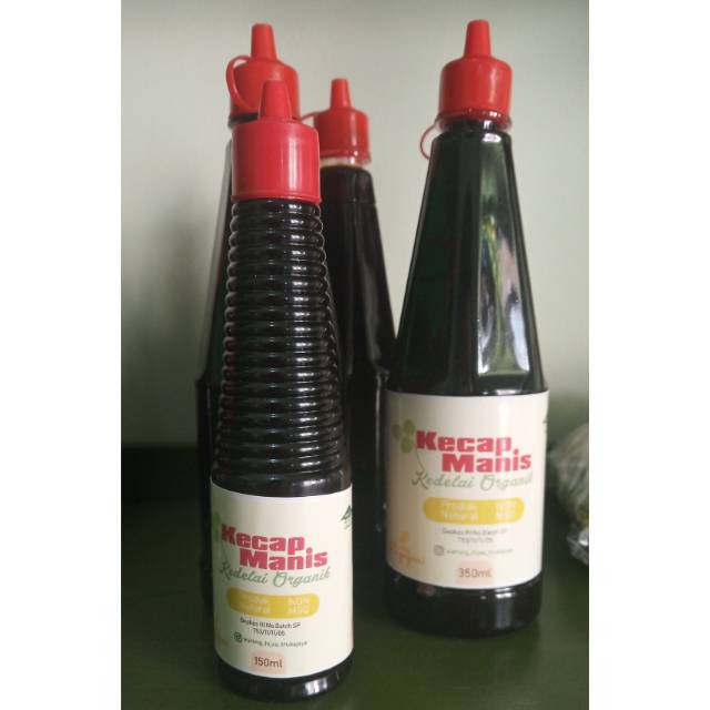 Kecap organik terbuat dari kedelai organik dan bahan-bahan yang sehat dan bebas dari bahan berbahaya bagi tubuh. Diproses secara alami. Tekstur agak sedikit encer karena tanpa menggunakan bahan pengental.