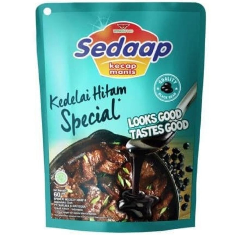 Kecap Sedaap Kedelai Hitam Special dibuat dari kedelai hitam berkualitas. Dengan warna yang benar-benar hitam dan tekstur yang kental, kecap ini meresap sampai ke dalam masakan. Kecap Sedaap Kedelai Hitam Special membuat warna masakan menjadi caramelized dan menggugah selera.