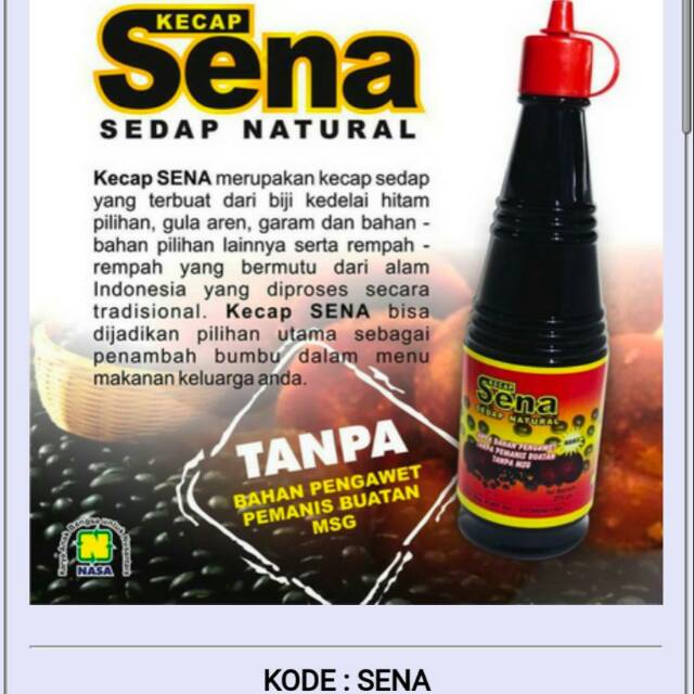KECAP SENA adalah kecap yang sedap beraroma natural sudah selayaknya menjadi pilihan anda untuk keluarga anda dalam hal citarasa makanan.