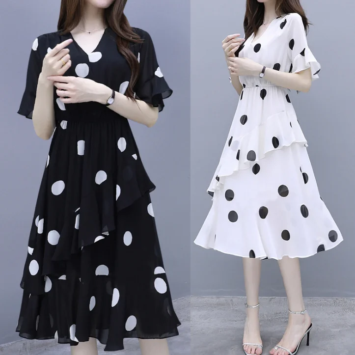 Модное женское деловое платье с поясом и круглым вырезом с коротким рукавом длиной до колена L чёрный