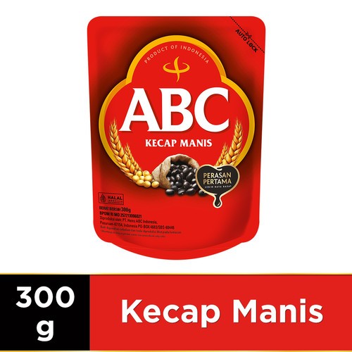 Kecap manis ABC dibuat dengan kedelai, gandum dan gula merah pilihan sehingga menghasilkan kecap manis dengan citarasa mantap, hitam dan kental. KOMPOSISI : Gula, air, garam, kedelai, biji gandum, pengawet natrium benzoat.