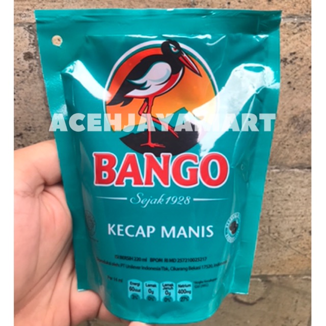 Kecap manis produk dari BANGO memiliki berat bersih 220ML.