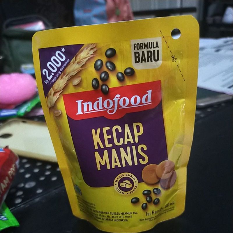 Kecap manis cap Indofood dengan berat bersih 60ml.