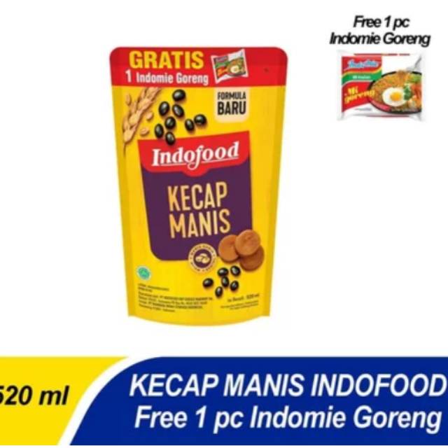 Kecap manis indofood 520 ml. Gratis 1 pcs indomie goreng spc 85gr