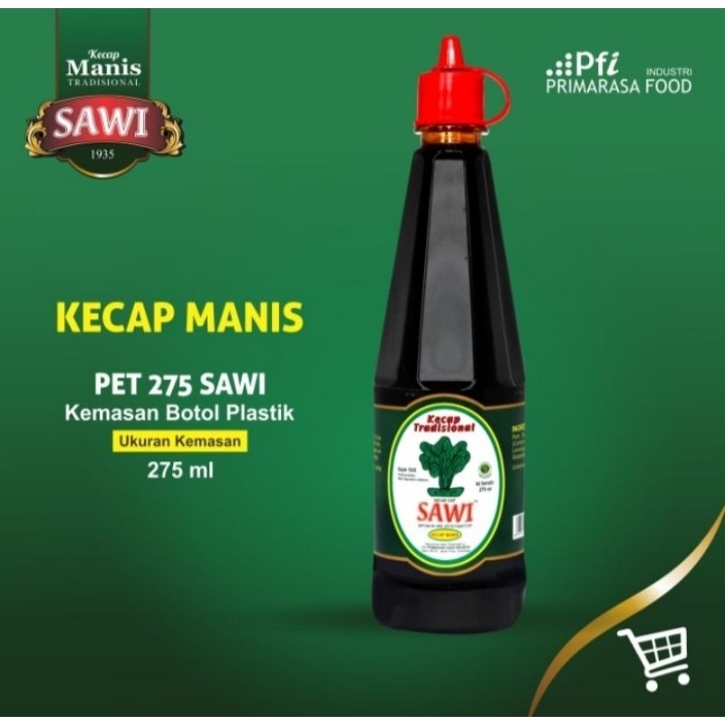 Kecap Manis Tradisional cap Sawi 275ml Komposisi : Gula kelapa , kedelai , bumbu rempah , garam , air. Diolah secara tradisional dengan standar kebersihan dan kualitas yang tinggi. Diresepkan dari bahan alami yang segar dan terpilih. Diproses secara alami tanpa pengawet dan bahan kimia lainnya.