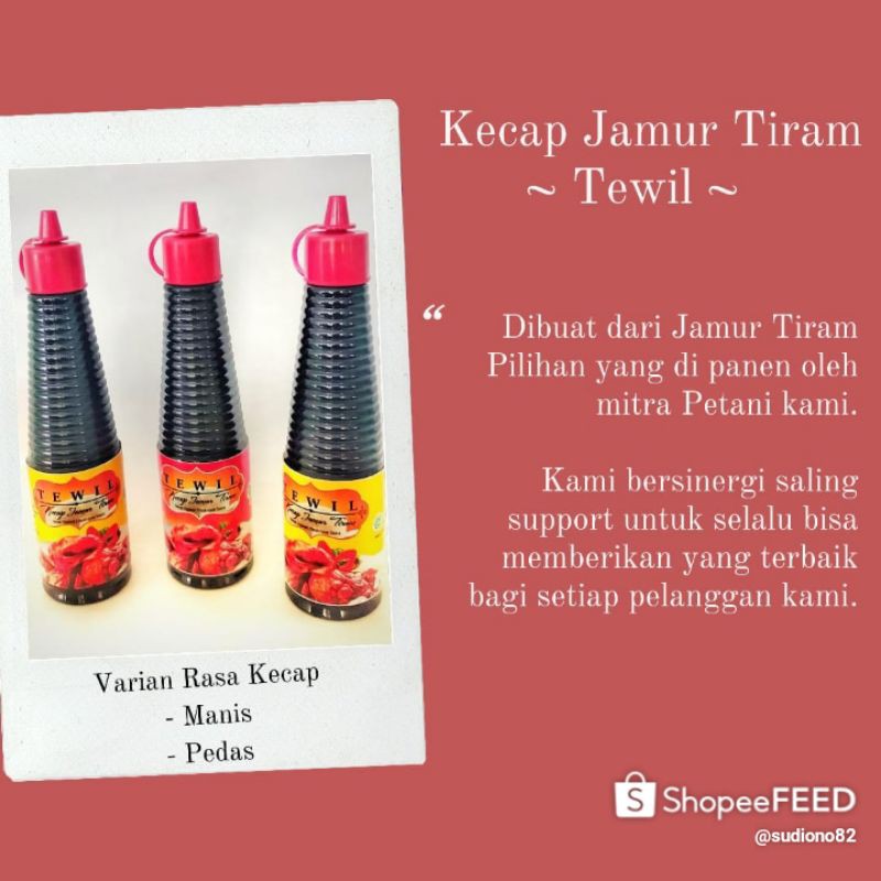Kecap manis dua rasa,,manis dan pedas,terbuat dari Jamur tiram sebagai komposisi utama