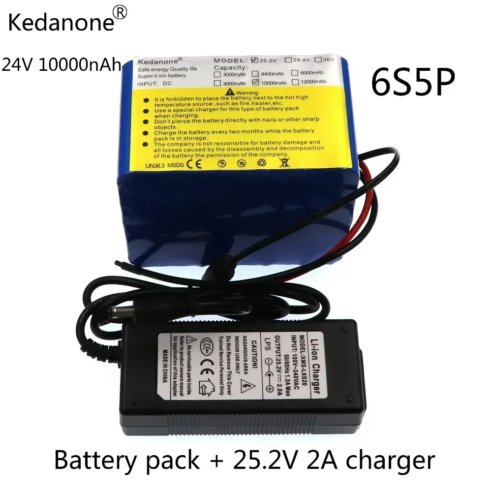 Kedanone Brand 24V 10Ah 6S5P Аккумулятор литиевый 350w e-bike Li-Ion 25,2 V 10000mah литиевые bms Аккумулятор для электрического велосипеда 250W + 2A