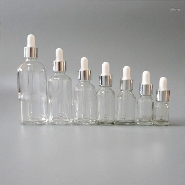 storage bottles & jars 5/10/15/20/30/50/100ml reusable portable essential oil bottle white rubber head dropper silver cap clear cosmetic con
