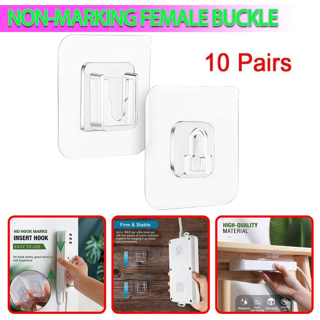 Kell 10 пар безвинтовых держателей для полосок Самоклеящийся настенный держатель для удлинителей