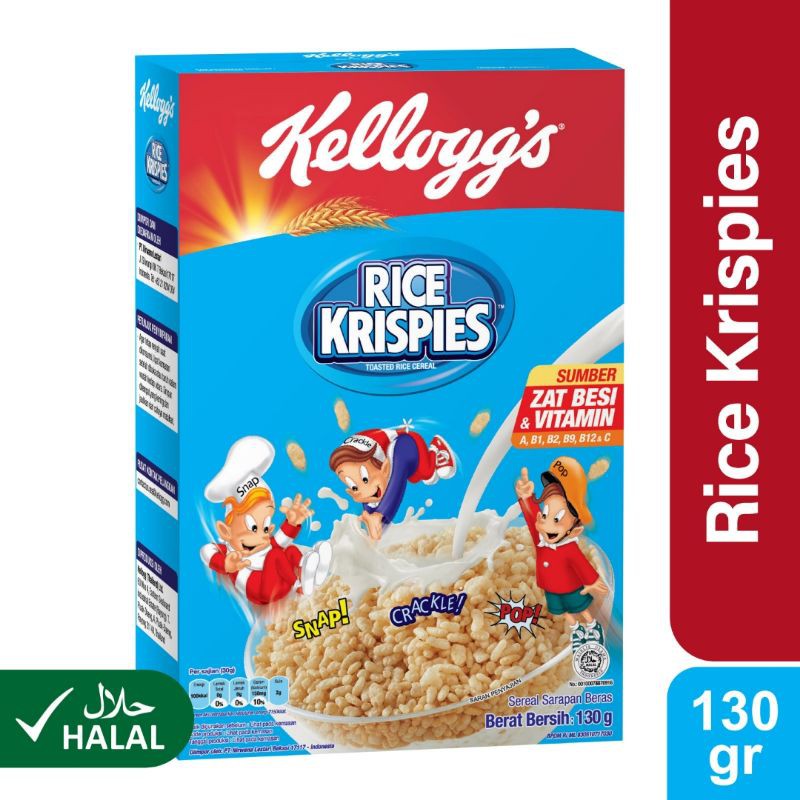Kellogg Rice Krispies Sereal adalah sereal untuk sarapan sehat dan lezat yang terbuat dari biji-bijian beras berkualitas. Sereal ini terbuat dari beras asli dan dikemas dengan 8 nutrisi penting (vitamin A, B1, B2, B3, B6, B9, C and zat besi). Berguna untuk kesehatan dan memberikan energi dan nutrisi yang dibutuhkan.