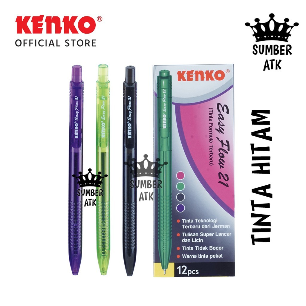 Pulpen Kenko Easy Flow 21 Terdapat Pilihan tinta Biru dan Hitam , silahkan di pilih variannya