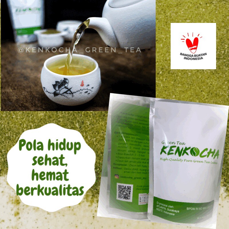 Kenkocha green tea dibuat dari daun green tea kualitas terbaik murni yang di pantau khusus mulai dari cara perawatan tanaman sampai pengeringan serta diproses khusus untuk hasil terbaik. Sehingga banyak manfaat alami dari green tea yang menjadikan kenkocha bagian dari super food.