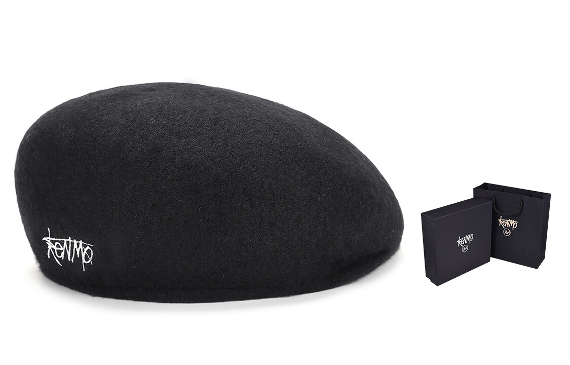Kenmer Береты унисекс KENMO, Черный (этикетка с вышивкой из шерсти)