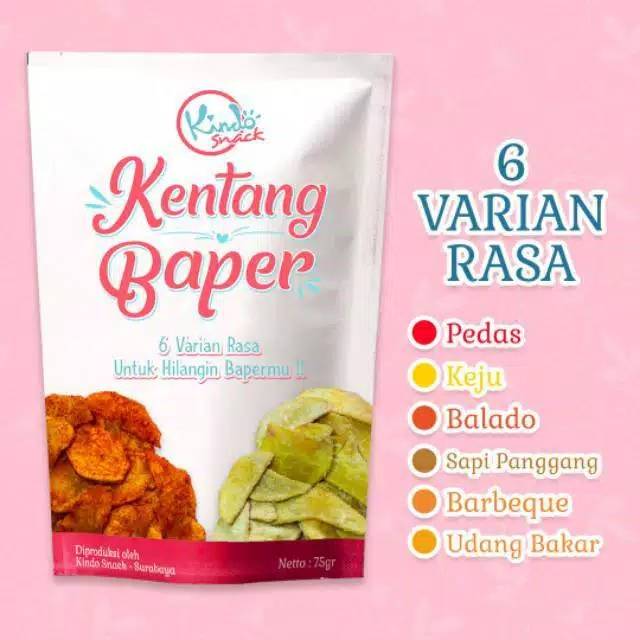 Nikmati Kentang Baper kindosnack dengan 6 varian rasa yang asik dimakan saat kamu lagi baper dengan seseorang