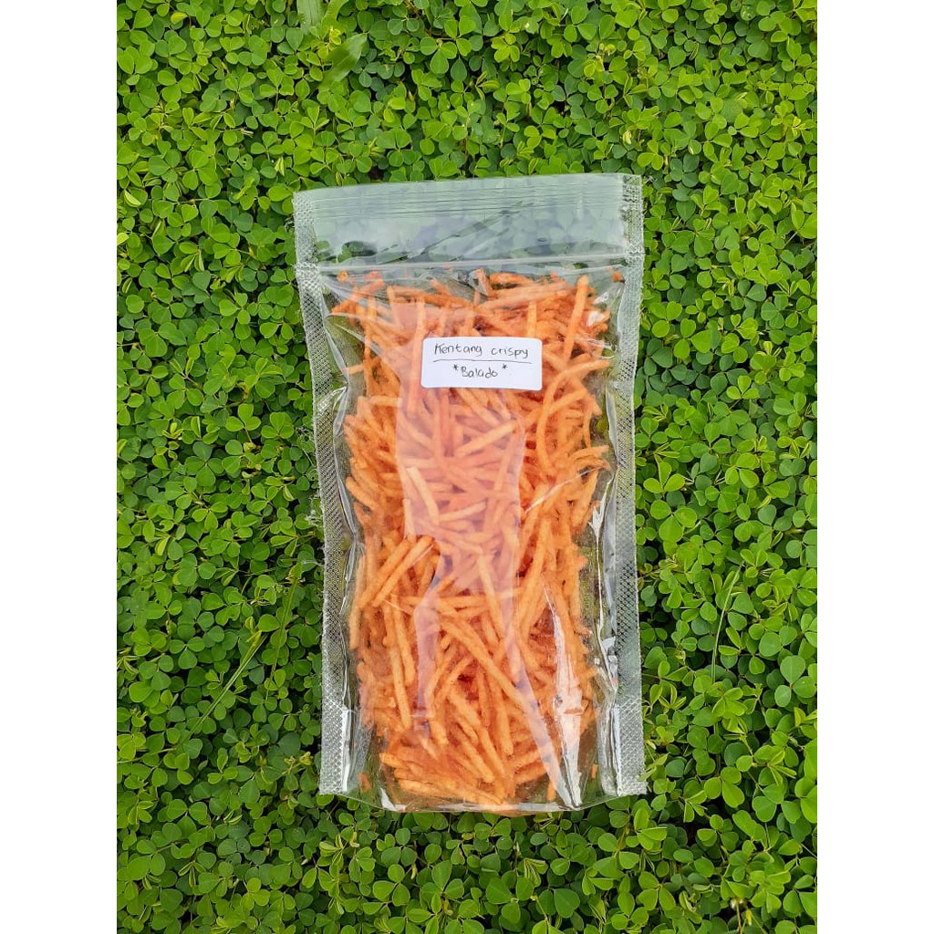 Kentang crispy balado dibuat dari kentang pilihan, yang di serut memanjang seperti stik dengan taburan bumbu balado. Rasa gurihnya kentang bercampur bumbu, bikin ngemil makin asik & bikin ketagihan