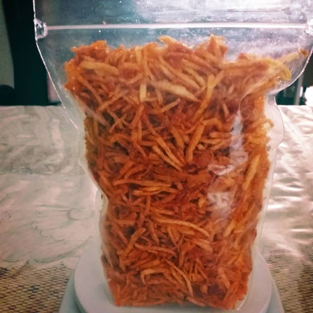 Kentang mustofa , dibuat dari kentang pilihan dengan bumbu pedas manis, cocok untuk cemilan maupun lauk makan.