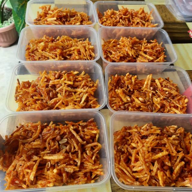 Keripik kentang pedas dan manis dengan kacang