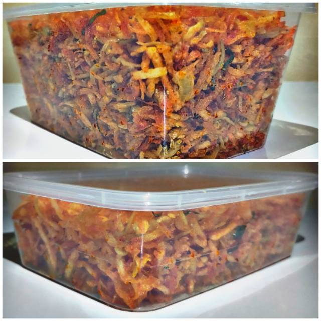 Terbuat dari kentang pilihan dicampur dengan teri Medan berkualitas dibalut dengan bumbu yg sangat lezat. Ditiap gigitannya akan ada aroma daun jeruk yg membuat kentang Mustofa semakin lezat dn nikmat. Sehingga rasanya selalu terekam di memori kita.