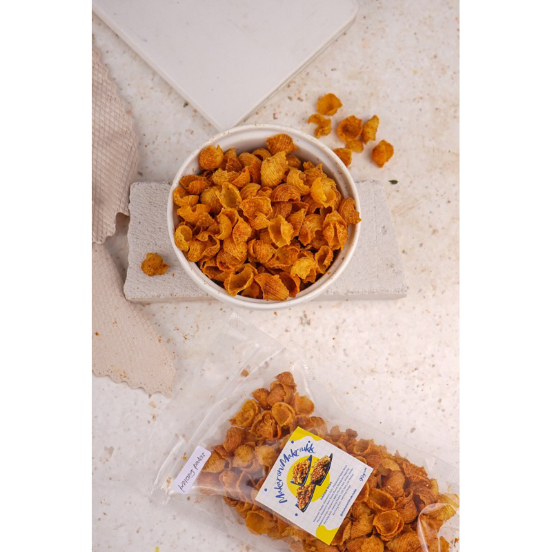 Kerang pedas berbahan dasar makaroni berbentuk kerang dan dari cabe yang sudah dikeringkan lalu dihaluskan menjadi cabe bubuk serta bumbu racikan khas makaroni makriukk