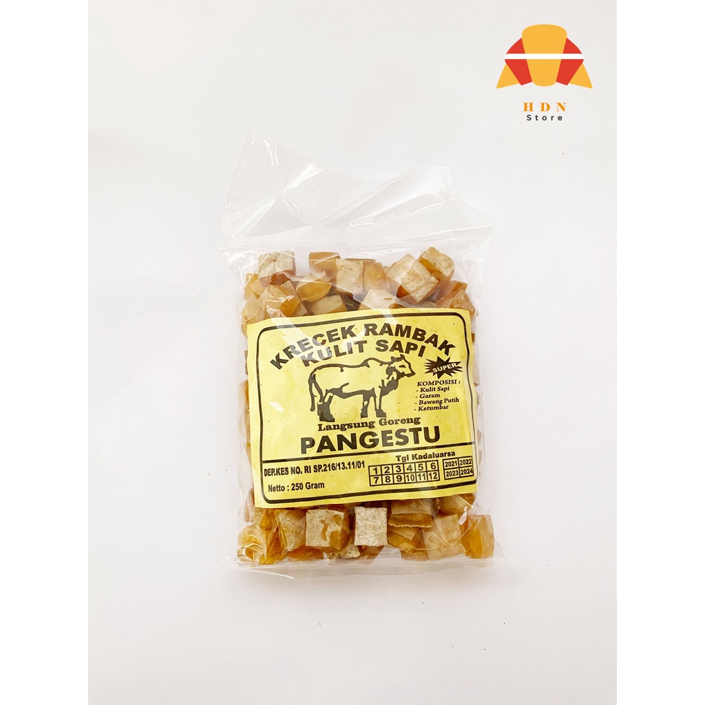 Krecek rambak kotak/dadu 100% kulit sapi asli cap PANGESTU, langsung di GORENG tanpa perlu menambahkan apa-apa. Jumlah setiap kemasan 250gr. Melayani pembelian di luar shopee dgn biaya ekspedisi yg lebih murah. Harga sewaktu-waktu bisa berubah, tergantung harga bahan baku (kulit sapi).