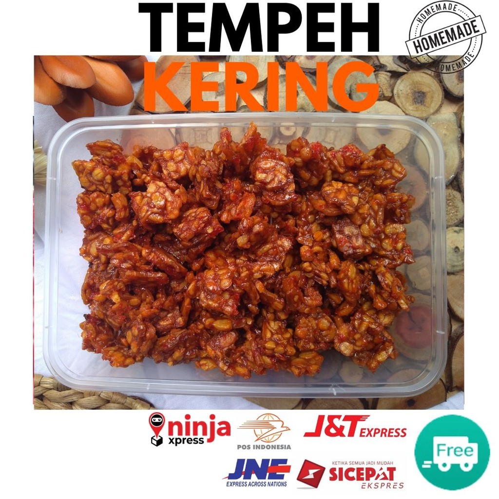Tempe asli digoreng tipis dan renyah dengan bumbu pedas manis.