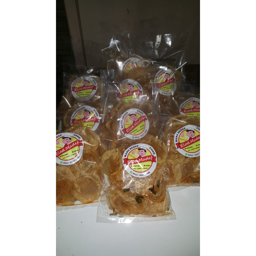 Keripik Elod Madef merupakan kripik yang tipis dengan warna trasparan seperti kaca dengan rasa yang khas.
