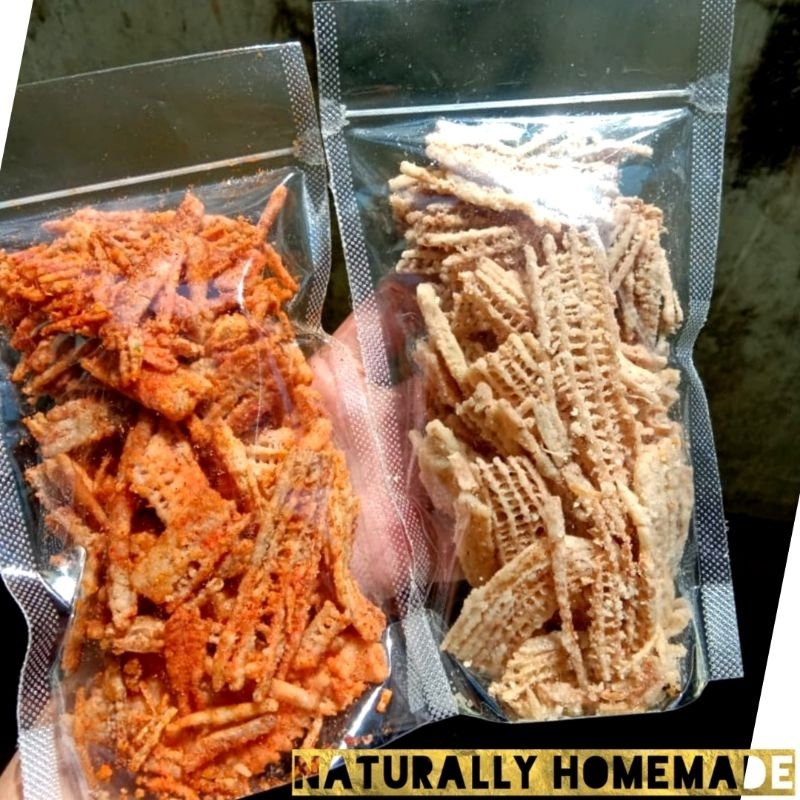 Snack Traditional yang bertekstur Renyah dan Krispy Asli Produk Indonesia dengan Bahan Utama dari Batang Pohon Pisang yang Berkualitas.