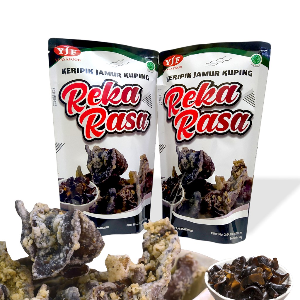 Keripik Jamur Kuping Reka Rasa. Terbuat dari jamur Kuping pilihan dipadukan dengan bahan bahan pilihan dan diolah secara higienis oleh tenaga ahli sehingga tercipta keripik jamur tiram yang renyah, gurih, lezat, nikmat dan sehat. Dikemas dalam kemasan alufoil dengan daya tahan sampai 1 tahun. Telah tersertifikasi Halal MUI dan PIRT sebagai standar keamanan pangan serta menjamin kepuasan konsumen.