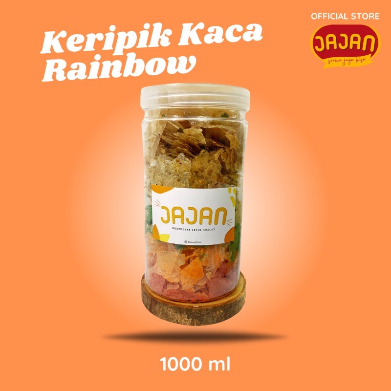 Keripik Kaca Rainbow terdiri dari 6 varian rasa dalam 1 jar berukuran 1000ml dengan berat 250 gram, cocok banget buat kalian yang mau isi stock snack diruang tamu atau cemilin di kamar tanpa takut tumpah dan alot.