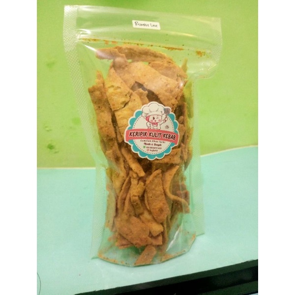 Cemilan keripik kulit kebab Gurih, Renyah dan Lezat.