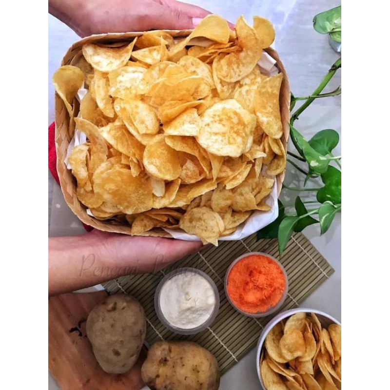 Tebuat dari Kentang asli yang dipotong dengan ketipisan yang pas membuat Keripik Kentang ini terasa nikmat dan kriuk pada saat digigit.