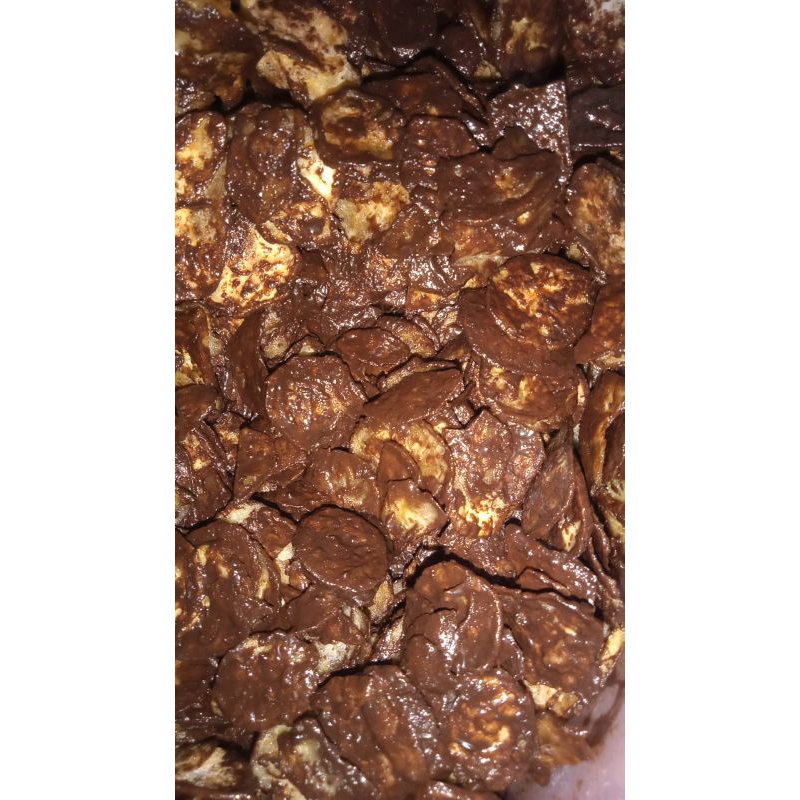 Keripik pisang yang dilapisi cokelat lumer dengan rasa gurih dan renyah