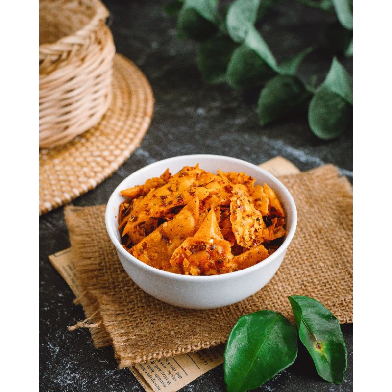 Keripik pangsit rasa pedas