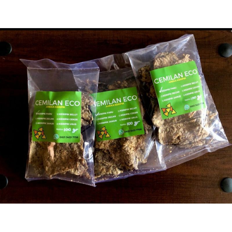 Keripik paru terbuat dari 100% paru sapi berkualitas. Keripik paru sangat cocok untuk pendamping lauk atau cemilan. Dibuat menggunakan bumbuh rempah tradisional. Dijamin enak, gurih dan renyah.
