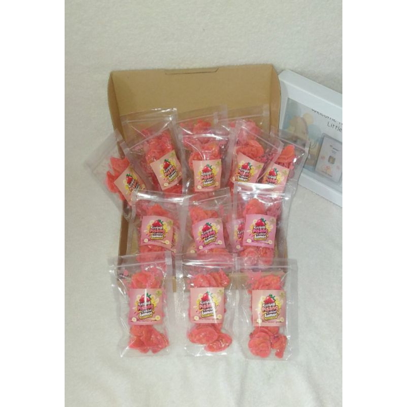 Keripik pisang lumer rasa strawbery diproduksi dengan pisang pilihan dan juga rasa strawbery yang lezat. Sangat cocok menemani disaat santai dan menjadi sajian yang istimewa dengan keripik pisangnya yang renyah dan lumernya strawbery.