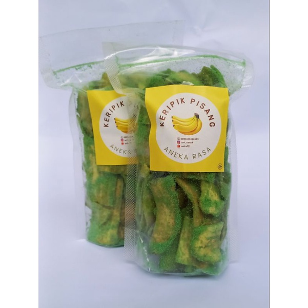 Salah satu olahan keripik pisang yang disukai banyak orang karena rasanya yang nikmat, pisangnya yang manis dan gurih dengan baluran bubuk matcha.