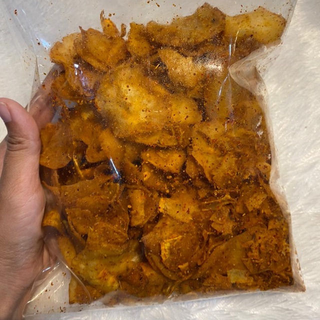 Keripik yang udah ada dan produksi sejak tahun 1995. Keripik yang pedes seperti omongan tetangga. Wajib di coba cocok yang wfh gini