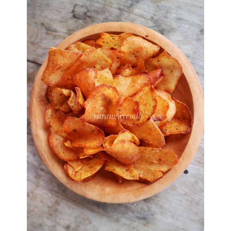 Keripik singkong khas Bandung ukuran small dengan berbagai varian, antara lain: