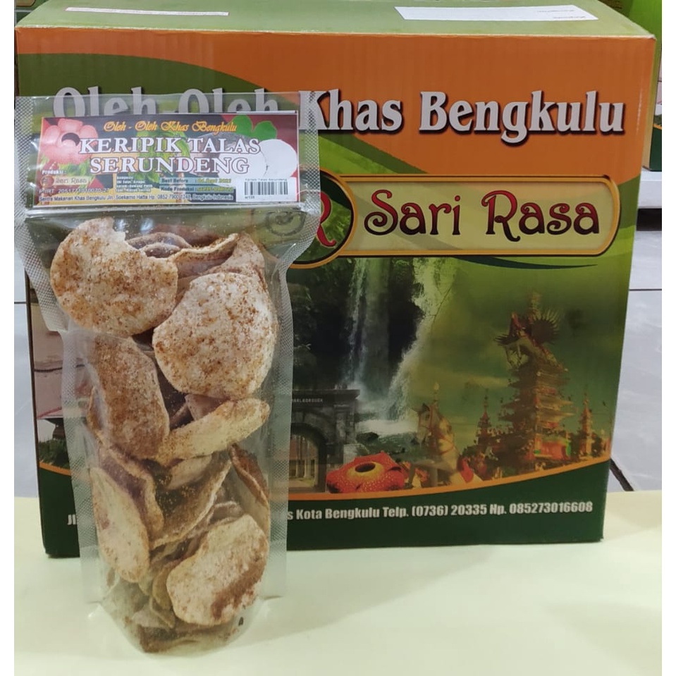 Kripik talas serundenngi adalah keripik yang terbuat dari ubi talas, yang mana komposisinya yaitu : ubi talas, kelapa, garam, bawang putih, cabe dan minyak goreng.