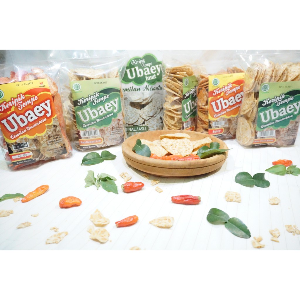 Keripik Tempe Ubaey merupakan salah satu produk snack atau makanan ringan yang di produksi oleh CV. Putra Bengawan Tangerang dengan Bersertifikasi Legalitas Lengkap LP-POM Halal MUI dan Dinas Kesehatan.