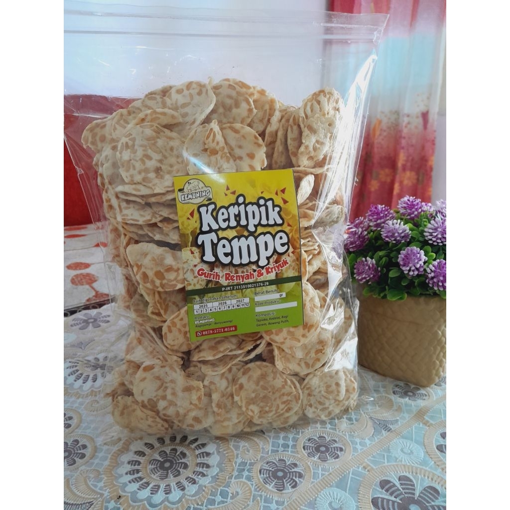 Keripik tempe tapioka adalah camilan renyah dan gurih yang terbuat dari irisan tipis tempe kedelai yang dibalut adonan tepung tapioka, lalu digoreng hingga garing. Produk ini menawarkan kombinasi tekstur renyah dengan rasa tempe yang khas, serta kaya akan protein dan serat dari kedelai sebagai sumber gizi.