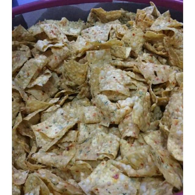Keripik pangsit bawang original dan pedas non msg