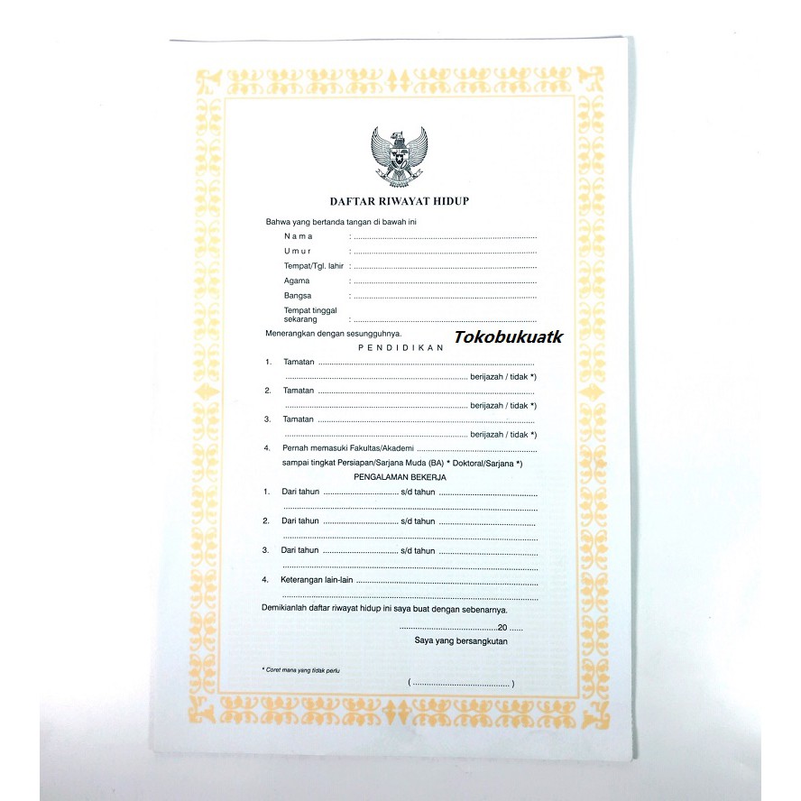 Kertas Daftar Riwayat Hidup